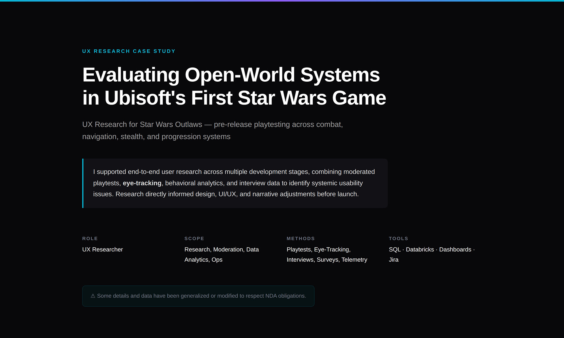 Avatar: Frontiers of Pandora - UX Research
